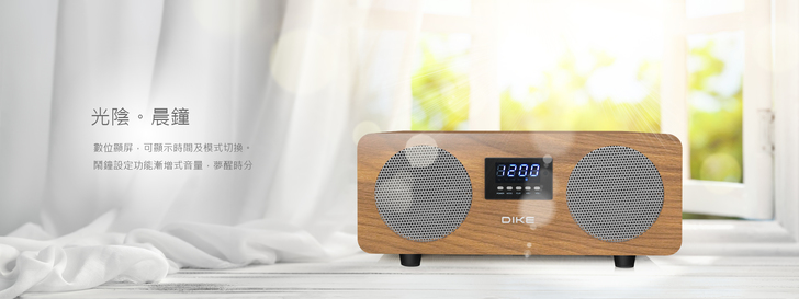 DIKE DS603同時具備有線(3.5mm音源接孔)和無線(藍牙)兩種音樂傳輸規格,帶來便利的數位音樂生活,也支援外接隨身裝置的媒體播放,利用USB 和 TF 插槽來放置喜歡的珍藏音樂,DS603 搭載時鐘及鬧鐘功能也能成為生活的小助手!