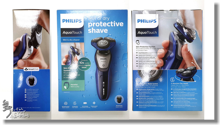 ▲很標準的Philips電鬍刀包裝風格,彩盒上把各項特色都說明清楚了。