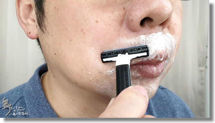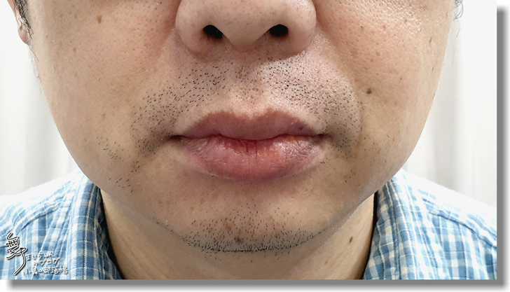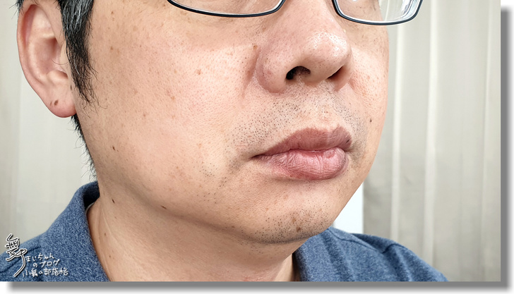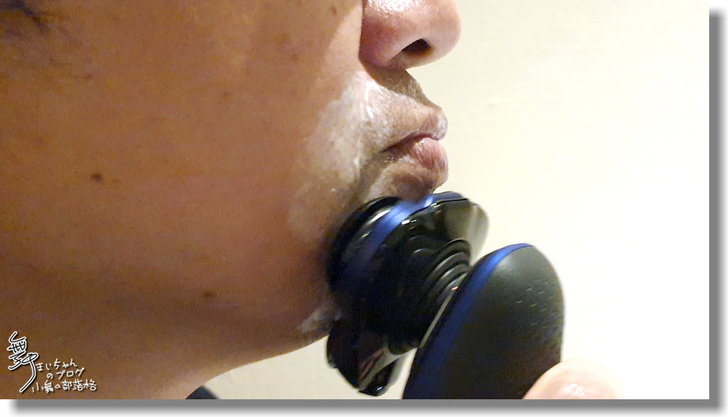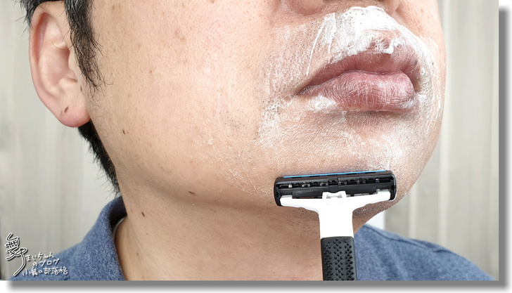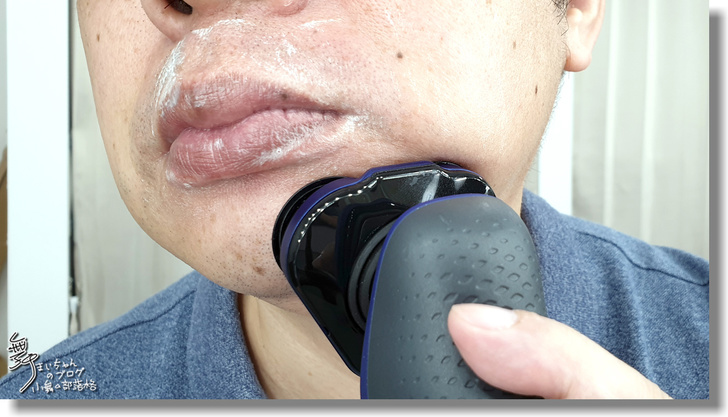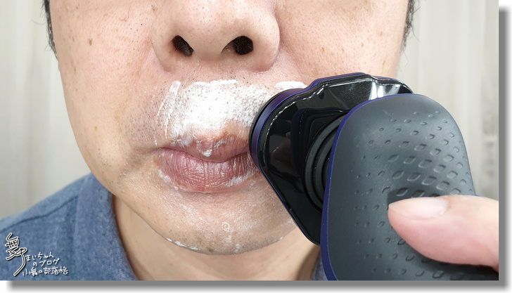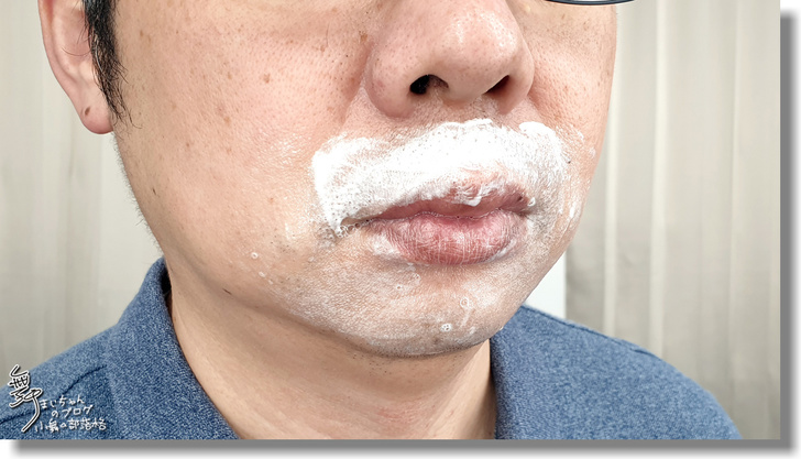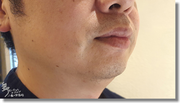 ▲接著再來試試加上刮鬍泡的溼刮看看效果,一樣是一整天起床後的滿臉鬍渣。