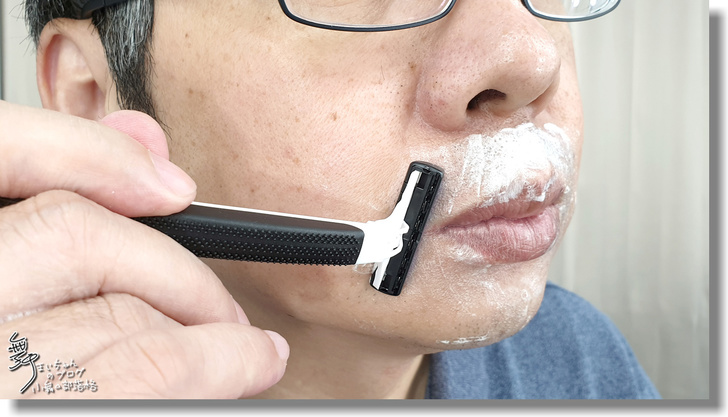 ▲因為要手刮,所以先抹點刮鬍泡才不會一失手見紅,也因此能使用的場合就會受限。