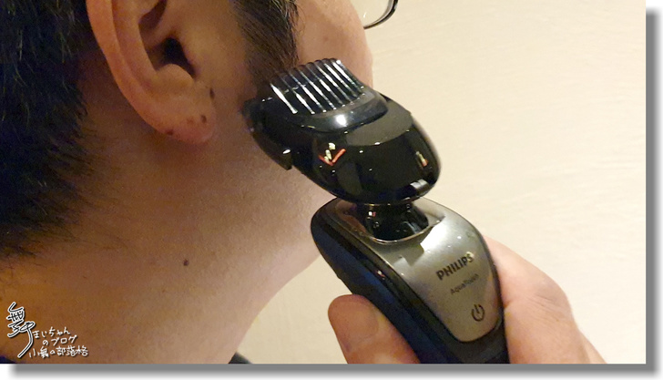 ▲小心翼翼的處理好一側,接著再請出PHILIPS Aquatec乾濕兩用電鬍刀