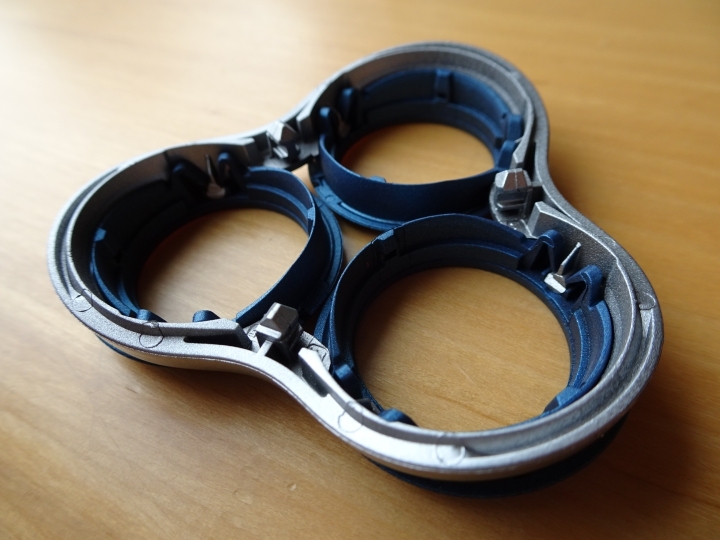 而刀頭內的刀刃設計更是讓我驚豔,除模組化設計它能夠容易清理維護拆裝分離外,看到刀刃與機構的精細程度有種驚嘆的感受,覺得Philips的設計與製造工藝是如此之美,有種媲美日式產品特有的精密與貼心感。