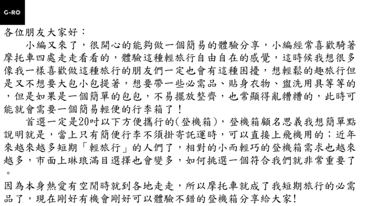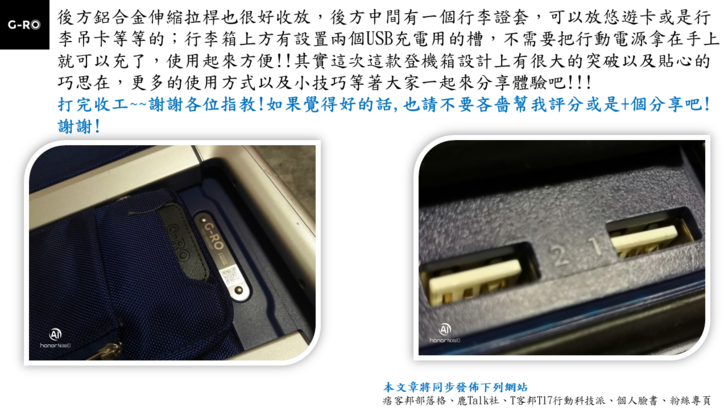 [分享] G-RO無與輪比輕旅遊體驗! 科技 · 阿培 · 發表於 2019-01-15 12:23 · · 檢舉 列印版 twitter plurk 6.2萬閱讀次數 行李箱台灣官方傳送門 G-RO的官網 本文章將同步發佈下列網站 個人粉絲專頁 個人部落格 鹿Talk社文章 讚 收藏 快速回應 引言回應 登入來回應 header home
