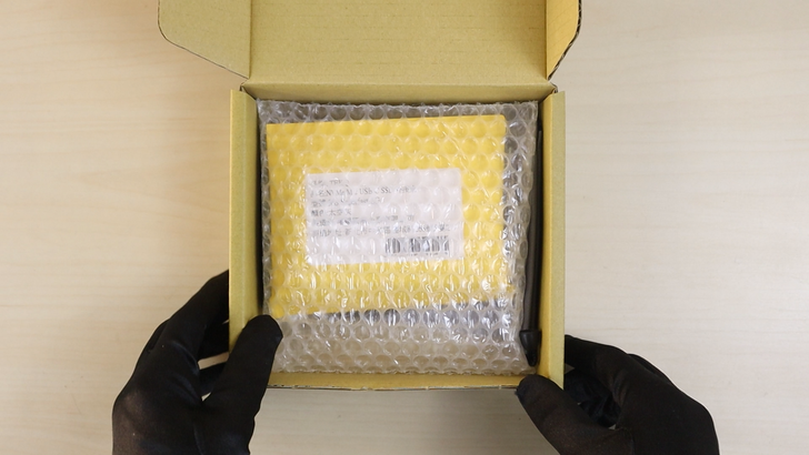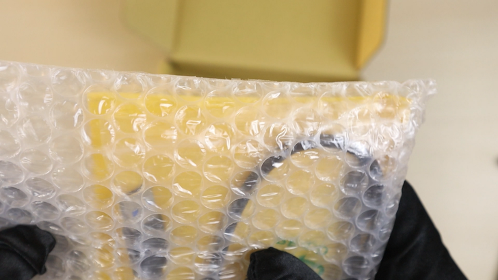 回到主體,這個氣泡緩衝包材沒有接縫,我狐疑了一陣子才認知「好的,他沒有接縫」。最後是用比較暴力把它給開了~