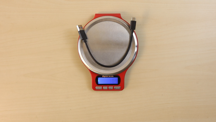 隨附的 Type C to Type C 線材重量約 9.1g。