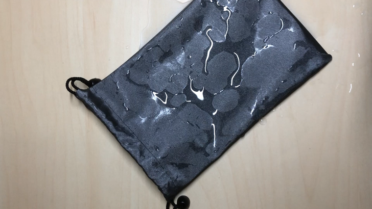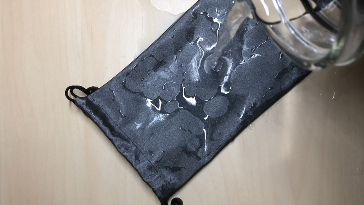 因為收納袋不在官網原本提到的產品內涵物中,好奇之下詢問 TEKQ,得到回覆,這個是「防水」的收納袋。ㄟ…真假,那我來試試看,喂他一些水!