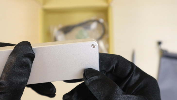 內附容量的版本,打開來時 SSD 就是裝好的了。螺絲在光線投射下,呈現同心圓的紋路,比較不會跟其他十字螺絲混淆。