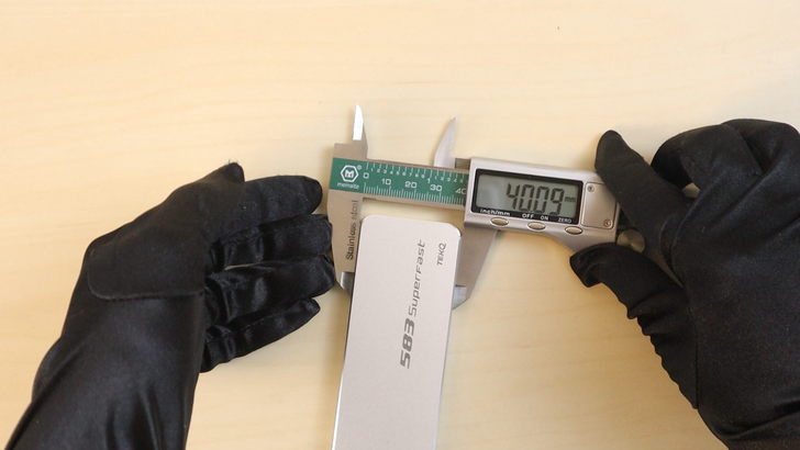 583 Superfast 的厚度約 10.1mm。目前 Enter 的 MacBook Pro 的 C 面距離桌面約 10.15mm。相差才僅僅 0.05mm,所以感覺 Superfast 放在桌面時幾乎跟 MacBook Pro 一樣高。