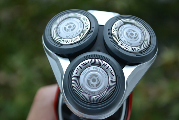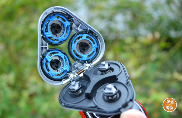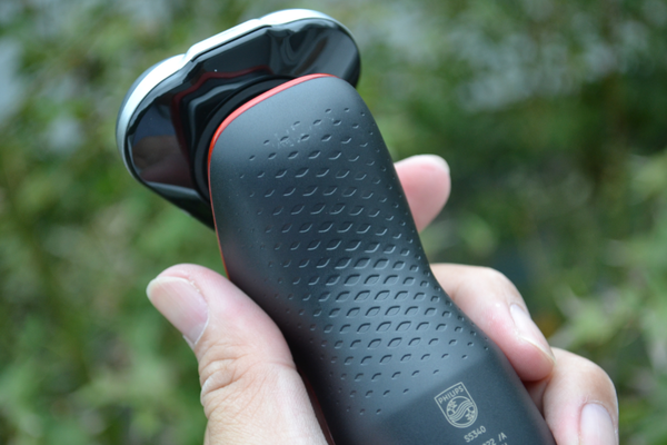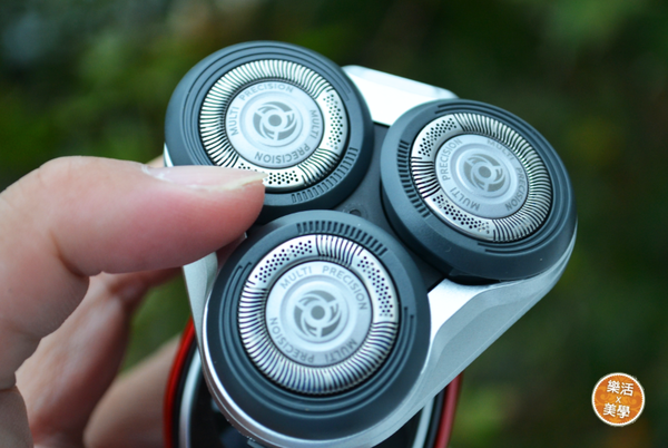 多段式設計,啟動時沒有太大的雜音,外觀看起來跟其它電動刮鬍刀差不多,但細看刀鋒部份就能發現不同之處,它的孔有圓有點也有線,不論你是大鬍子哈登、或是小日本型男,都能刮得一乾二淨更立體的刮去鬍渣,彈性的傾斜角度,不論是唇邊或下巴,都能更加貼合。