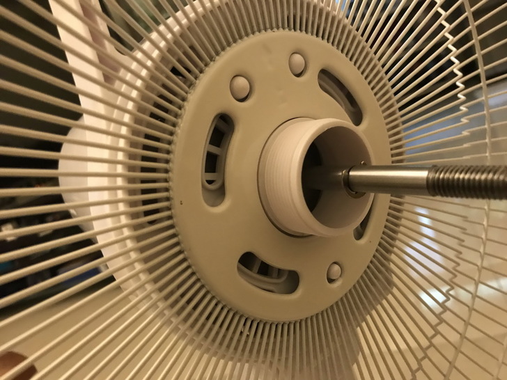 話說之前家中電風扇用了幾年居然壞了,主要是後來入手的一般風扇(有品牌的,不是一般雜牌),在扇葉部分若是金屬的,通常就是用顆螺絲固定,若是塑料的就是用個蓋子鎖住固定,所以一般的電風扇在鎖扇葉都用塑膠螺蓋,這個蓋子用久後,在拆裝時很容易就裂開,為何會去拆裝呢?小弟比較愛乾淨,大約一兩個月一定會清洗一次風扇,所以算滿頻繁拆裝這部分。後來也有看到加強型的,在中間螺紋的部份是金屬的,家中那台雖然可以上網找到零件,只是後來嚴重到它斷頭了!!就是仰角原本可以調上下,現在內部不知什麼東西斷了,固定不了只會垂頭喪氣的往下吹,所以就只好丟了……相信不少人也和我相同經驗 >”<