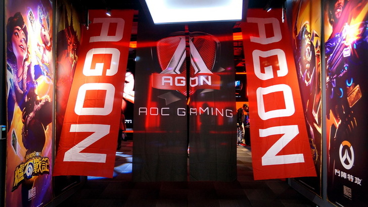 參觀過暴雪電競館的週邊商品之後,跨過這個布幕,就走進了AOC AGON III專業電競顯示器的世界了。