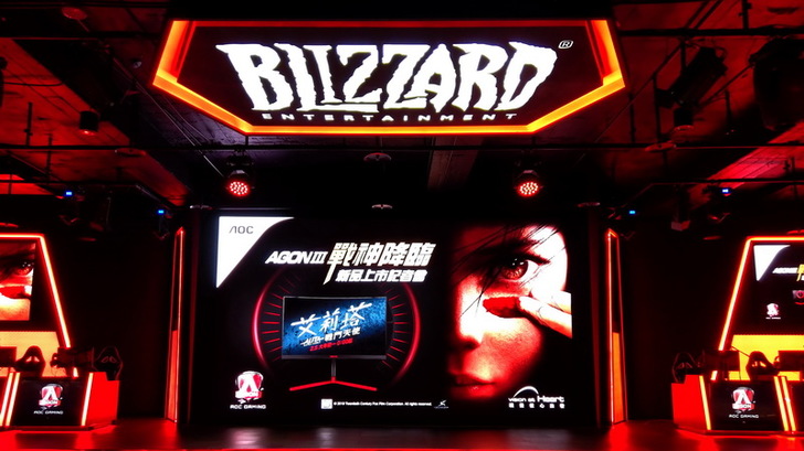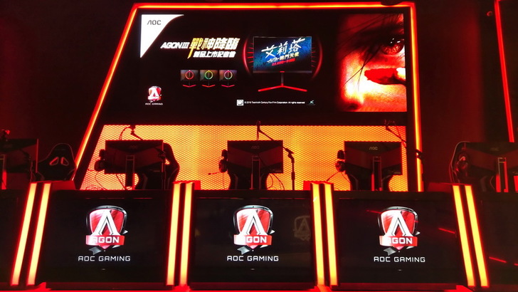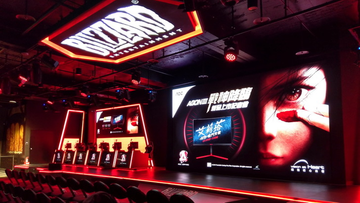 舞台的左右兩側,各有六組電競系統,這是用來舉辦電競比賽的設備,在這裡值得一提的是暴雪電競館裡使用的顯示器,正是AOC的電競顯示器!!