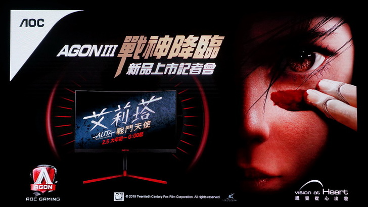 2019年1月14日,AOC在暴雪電競館舉辦了AOC AGON III專業電競顯示器發表會,這次發表會除了搶眼的電競顯示器之外,AOC還跟福斯影業合作,特別與將於2月5日上映的福斯鉅片『ALITA 艾莉塔:戰鬥天使』合作,攜手擊出勝利一戰。電影中女主角 ALITA 艾莉塔不畏懼的奮戰精神,在每次激戰後自我超越的核心價值,正如同AGON這些年來賦予自己的目標,挑戰自我以爭取電競玩家最高體驗。