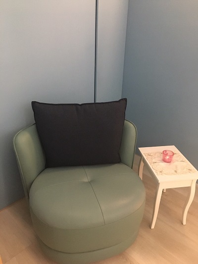 就稍微坐在他們的沙發椅休息一下