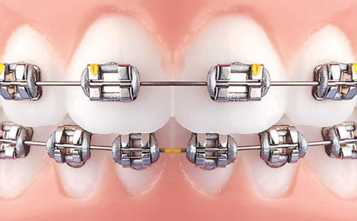 如下圖片左邊的綁上很多線的假牙款就是金屬牙套