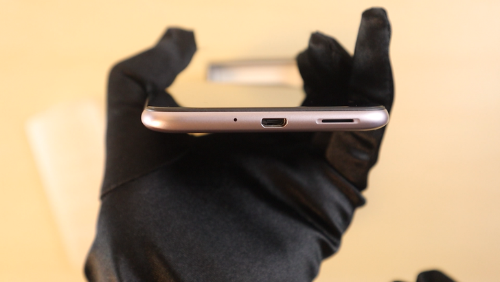 左側面上方是卡槽,這次使用三卡槽設計,4G+4G 雙卡雙待以及 microSD。