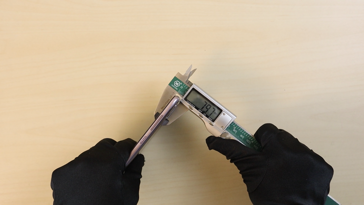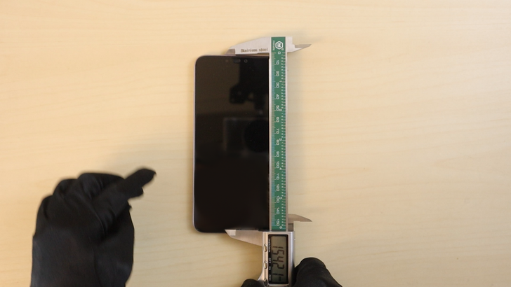 ZenFone Max (M2) 的長度略為超過 EnterBox 的游標卡尺極限了,官方數據是 158mm。