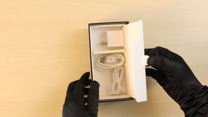 盒裝底層有三個配件,包含充電器、充電線、耳機,全部都是白色的。