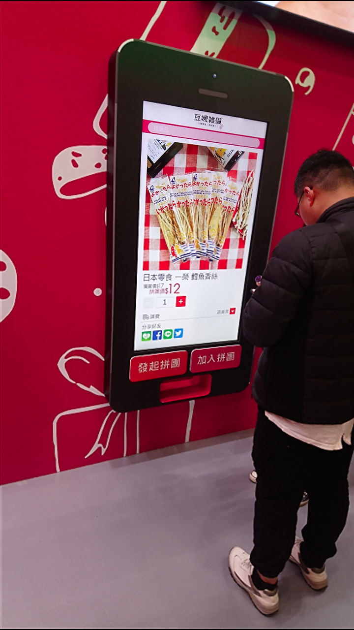 每個任務的內容都要玩不一樣的東西,像這個就是體驗一下購物揪團的功能,體驗完後就可以找這位身穿綠色衣服的正妹掃描QR CODE完成任務了!