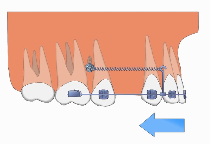 也就是所謂用金屬綁線加上牙齒上黏著扣環來調整牙齒的移動
