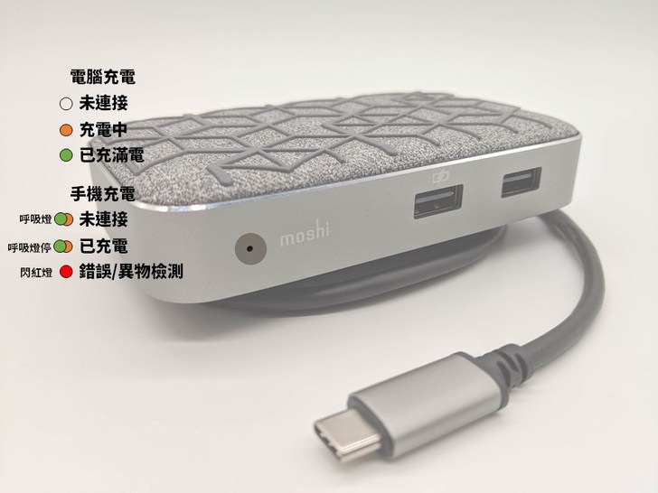 透過Moshi SymbusQ USB-C多功能無線充電擴充座能夠外接滑鼠鍵盤外,手機也能夠無線充電了,桌面馬上充滿生產力,讓你的工作環境馬上有源源不絕的動力