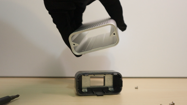 裝回去時,建議是先將頭部安裝在主機板上,再插入鋁殼當中。