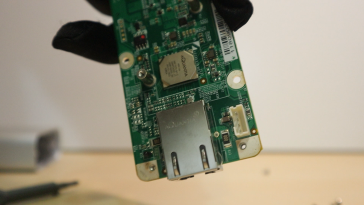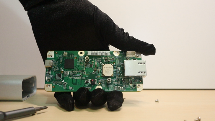 QNAP QNA-T310G1T 主機板正面全貌。Aquantia AQTION AQC107 這顆控制器是將 PCIe 轉成網路。