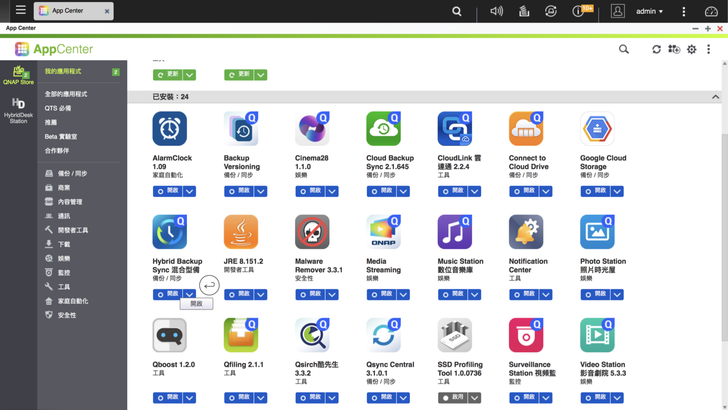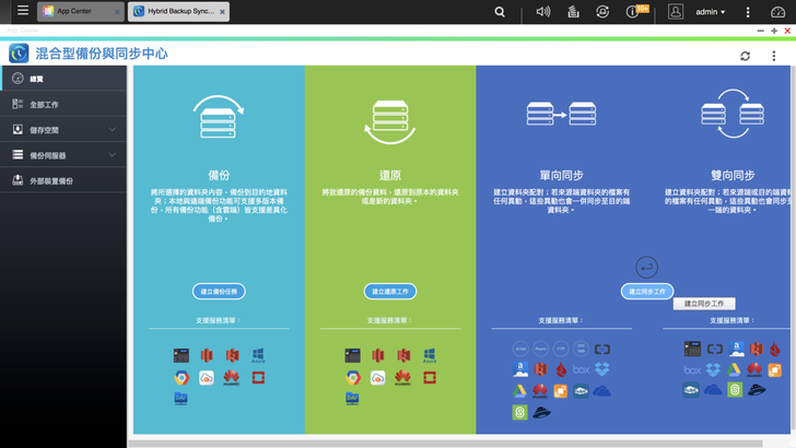 首先進到 App Center 下載「Hybrid Backup Sync 混合型備份與同步中心」,下載完成後將這個 App 開啟。