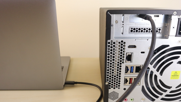 初期使用 TVS-472XT,我是比較習慣用 Thunderbolt 去連接。但我覺得 NAS 風扇和硬碟運轉的聲音太大,影響工作情緒和效率,因此我會想把 NAS 放別的空間。但 Thunderbolt 3 線材的長度並沒有這麼長,頂多我也只能買到 200cm 的線。