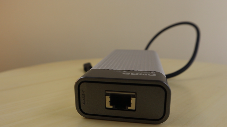 這一小盒是 NAS 大廠 QNAP 推出的 Thunderbolt 3 to 10GbE 的轉接器,特別適合像 MacBook Air、MacBook Pro 這種只有 Thunderbolt 3 接口,卻沒有網路線接口的筆電。此外即便有網路線接口,通常也是 GbE 的等級,而這次 QNAP QNA-T310G1T 是 10GbE,速度直接翻 10 倍!