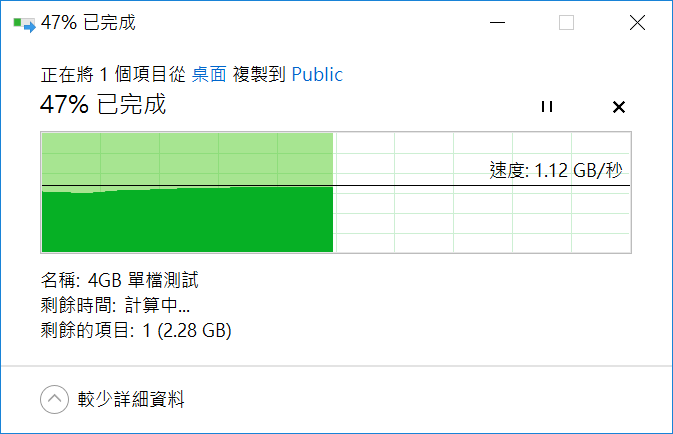 ,因為速度太快了,花了很多時間才把傳輸中的圖截下來,一個700多MB的檔案居然只要1秒多