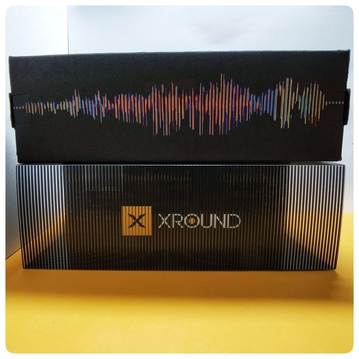 會有這樣的效果是因為它的塑膠外套採用了黑色與透明相間的設計所以在開箱時才有這麼特別的效果,把它放在檯燈燈管下來看感覺也別有一番情趣。不得不說 XROUND 連開箱的小細節都這麼的用心真的讓我很喜歡這樣的設計方式(雖然我後知後覺)