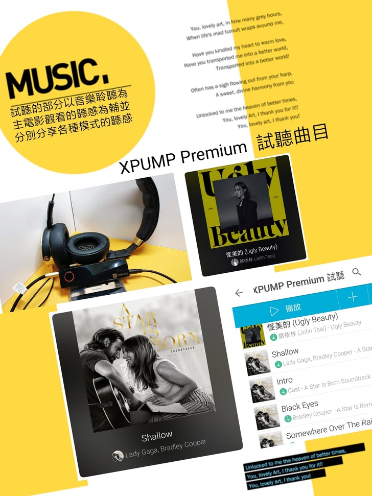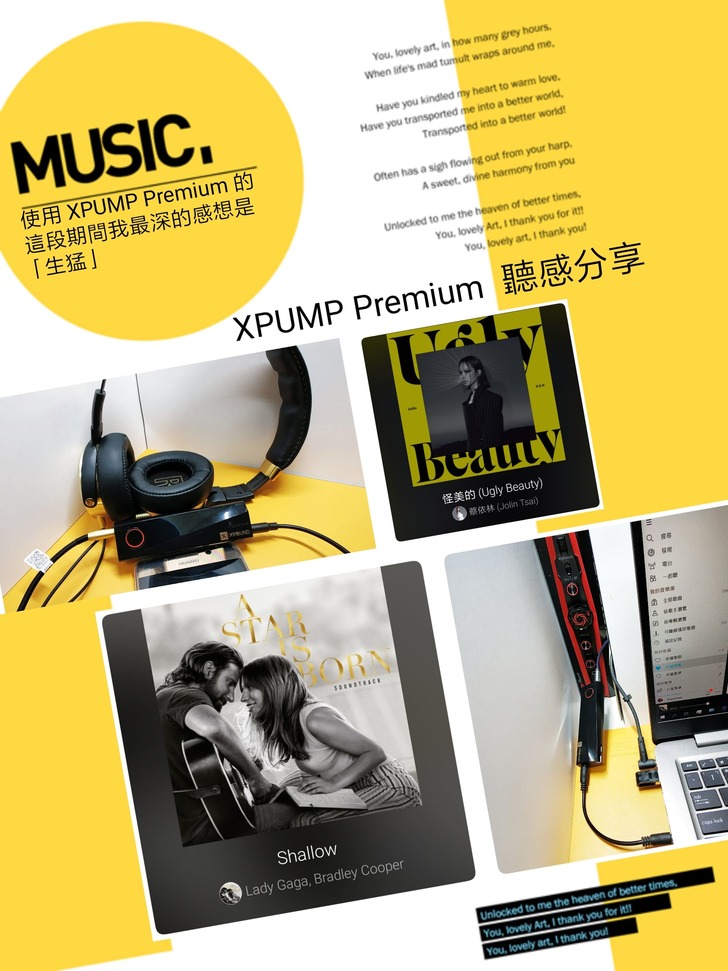 為了明確描述 XPUMP Premium 的聽感所以我大部分的時間都在聽《A Star Is Born》的電影原聲帶,在 XPUMP Premium 的加持下整張專輯的聽感給我十分優異的臨場感所以我進一步的找了《一個巨星的誕生》的網路電影試看來體驗一下這部大量使用現場收音的電影看起來會給我什麼樣的感受。這次我是全程使用 XPUMP Premium 的 USB 外接模式搭配環繞強化的紅燈模式搭配 MI6 與小米頭戴式耳機升級版來進行視聽。