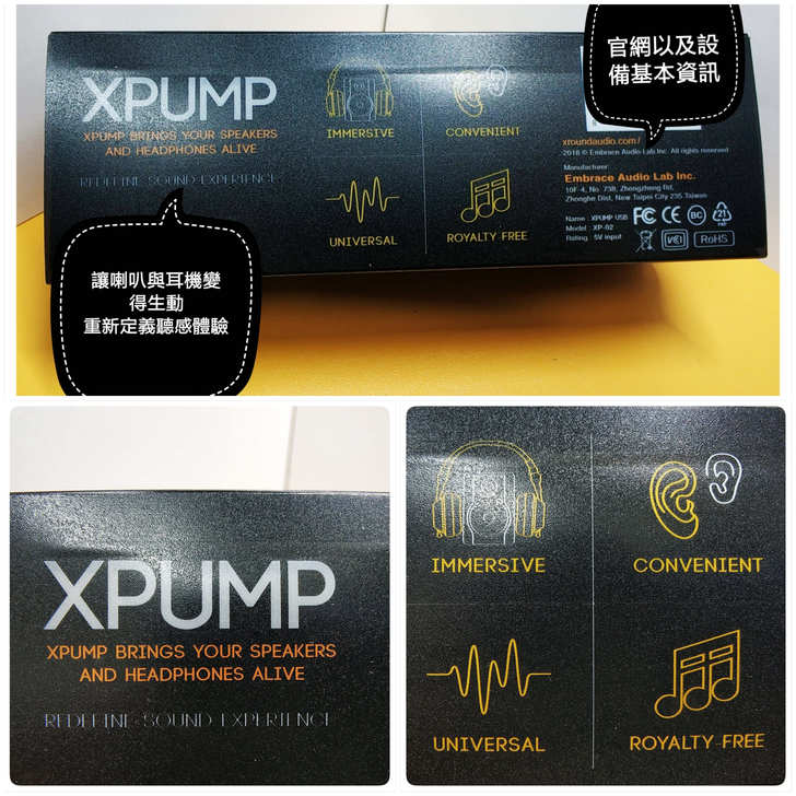 轉過來在包裝背面可以看到 XPUMP Premium 的特色與簡介,我很喜歡簡介的那句 XPUMP Brings your speakers and headphones alive 完全切合 XPUMP Premium 的產品定位