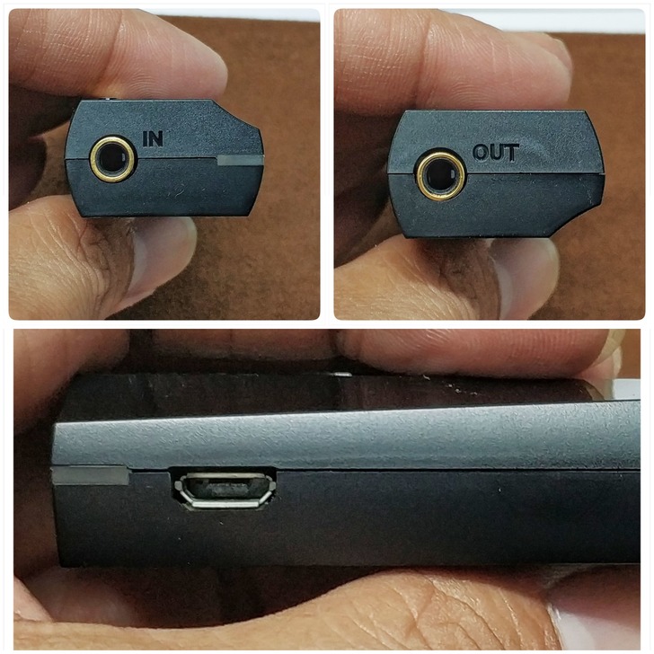 然後在輸出切換的側邊是音訊輸入的 3.5mm 接孔(IN)而在音量控制旁的則是連接喇叭或是耳機輸出的 3.5mm 接孔(OUT),在輸出切換的另一邊有著可以替 XPUMP Premium 充電與讓它成為 USB 外接音效控制的 Micro USB 接孔。快速的檢視了 XPUMP Premium 的外觀讓我覺得它的功能都設計的很明確直覺,使用者應該可以很快上手 XPUMP Premium 的使用。