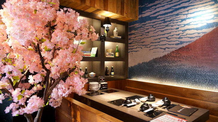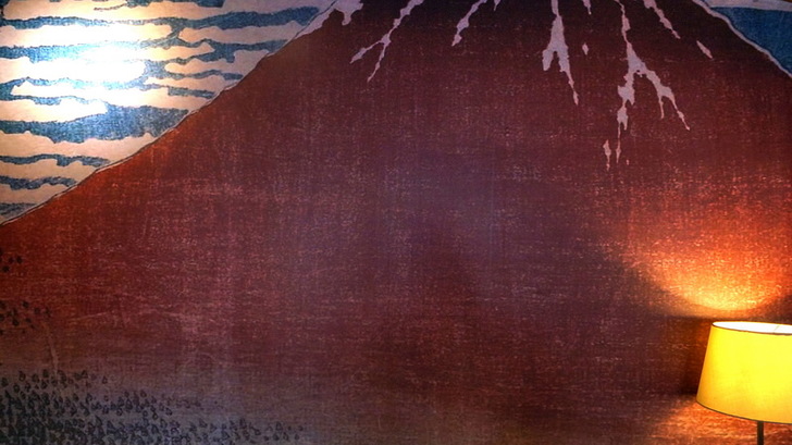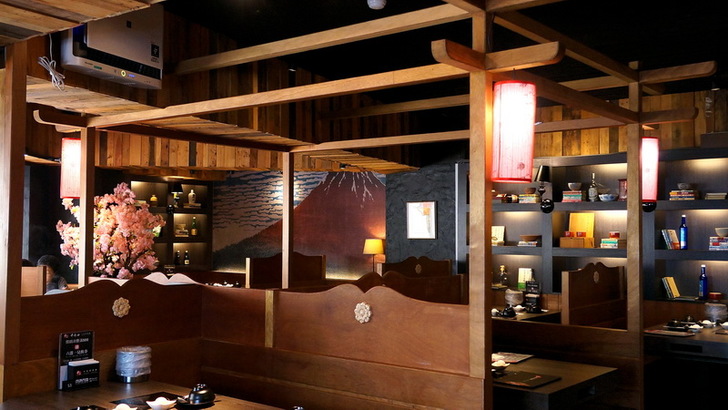 樓上的空間比一樓稍大,裝潢展現日式風格。櫻花,富士山,日本家族的家紋都看得到。