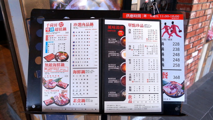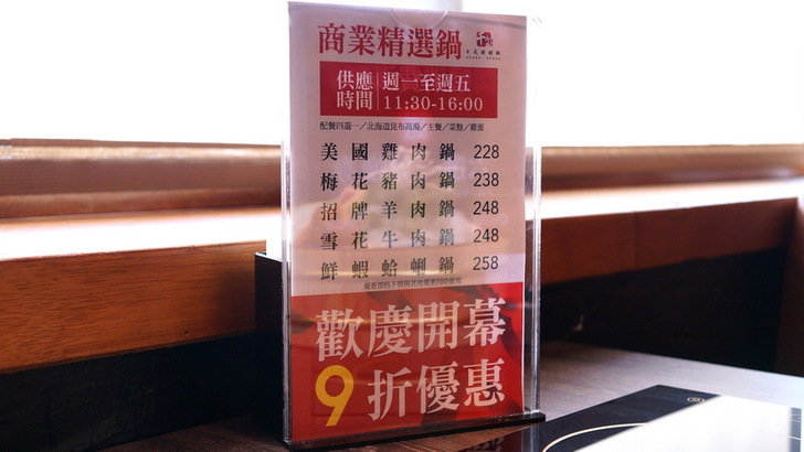 不過我還是來吃午餐的,所以趕快點餐吧。老媽點了小無敵海陸鍋(NT428+10%),我則點了商業精選鍋之梅花豬肉鍋(NT238+10%)