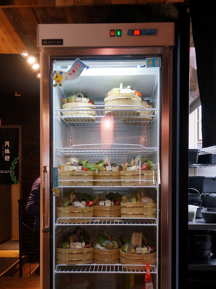 無論你點什麼鍋,都有一份菜盤,所以菜盤立刻就上了桌,我看到菜盤有個專用的冰箱,這樣鮮度有保障,蠻好的。