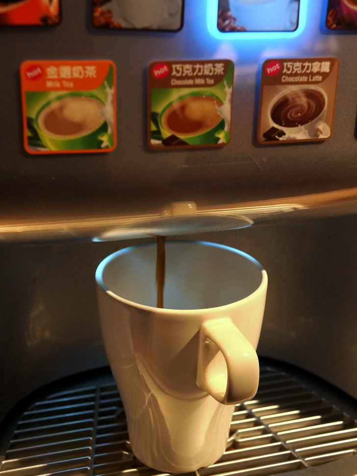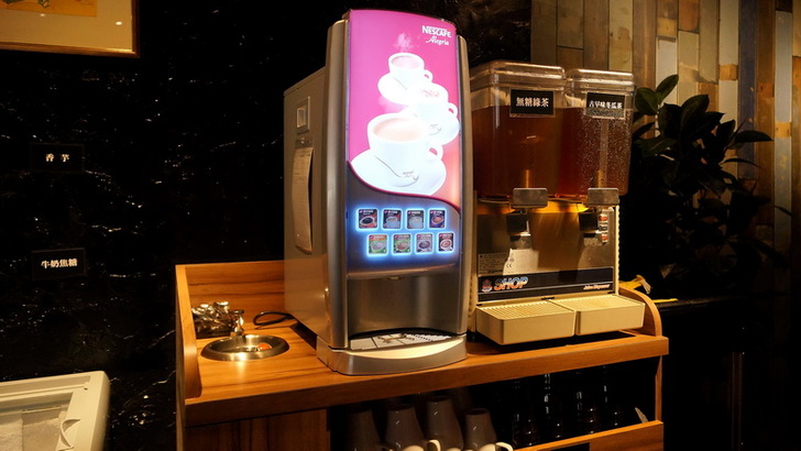 附餐的飲料隨你自取。冷的有無糖紅茶與古早味冬瓜茶。熱的部份有咖啡與奶茶與巧克力。
