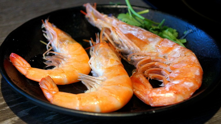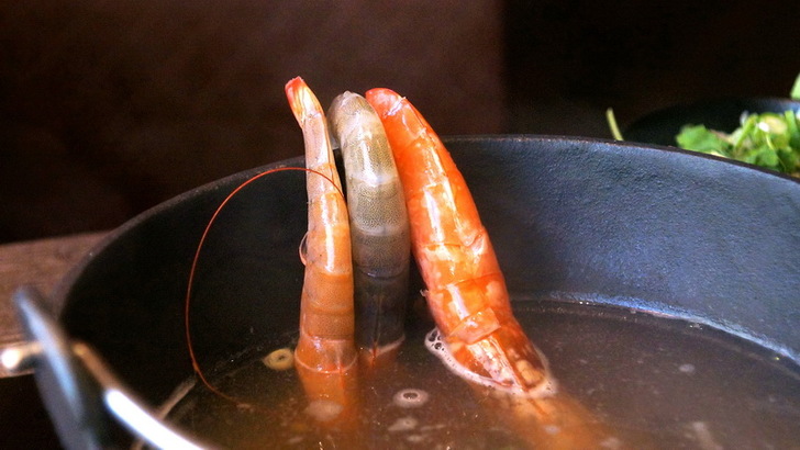 其次是蝦子,煮蝦頭需要比較久的時間,所以要讓蝦蝦倒栽蔥的煮一下,從左至右是菜盤附的蝦子,白蝦與天使紅蝦。