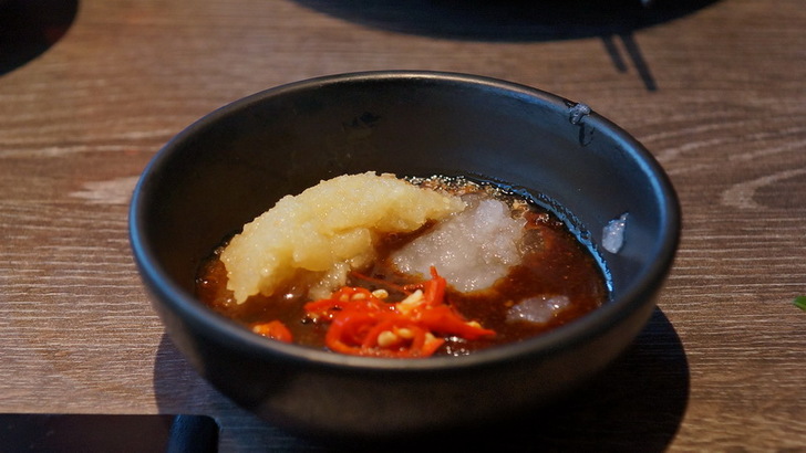 我們家很喜歡蘿蔔泥,每次吃小火鍋,醬料裡都會加入大量的蘿蔔泥,避免吃太多重口味的醬料。這次我調製了兩種口味的醬料,加了蘿蔔泥的,用來搭配海鮮,避免過重的調味蓋過海鮮的鮮味。