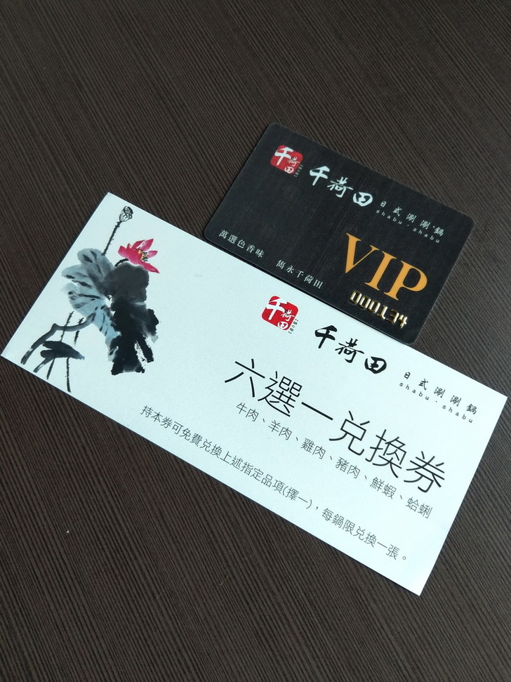 現在店家有些優惠,消費滿500元就送一張「六選一兌換券」,你可以挑你喜歡的來吃。滿800元送一張VIP卡,下次消費可以打9折,現在我也是黑卡階級啦,哈哈哈~~