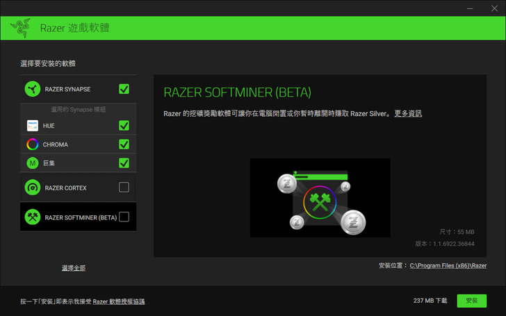 可根據自己所需要的功能來進行軟體安裝,比較神奇的是內建挖礦程式,至於怎樣挖、怎樣獲得獎勵這個就有待強者做進一步的說明分享。