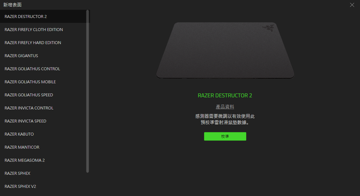 若是滑鼠墊也是使用雷蛇產品,可以在軟體中針對旗下的鼠墊進行優化校準。