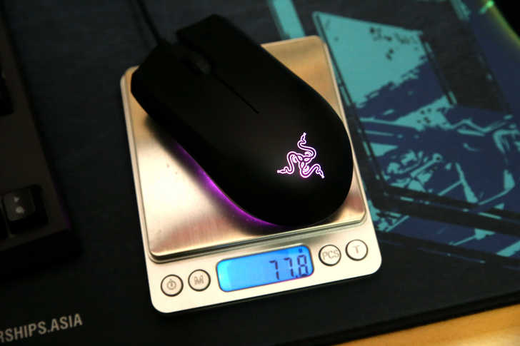三隻滑鼠中大家可能會覺得 M557 是最輕的,但因為它需要兩個 3 號電池,故整個重量還是有88g,也因為滑鼠較為短小,使用上需將手掌為弓,長時間使用會比較累一些,而 RAZER ABYSSUS ESSENTIAL 僅有77.8g,是三隻滑鼠中最輕盈的。