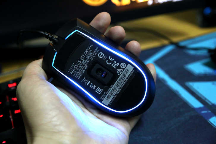 底部配置六個 RGB LED 燈,將燈光導到導光條均勻發光,配置的光學感應器是可達 7200 dpi 的 PMW 3399,網路上頗多人都覺得 PMW 3399是否為 3325 的升級版,但與其說是升級版不如,表現是更為接近 SS TrueMove1。