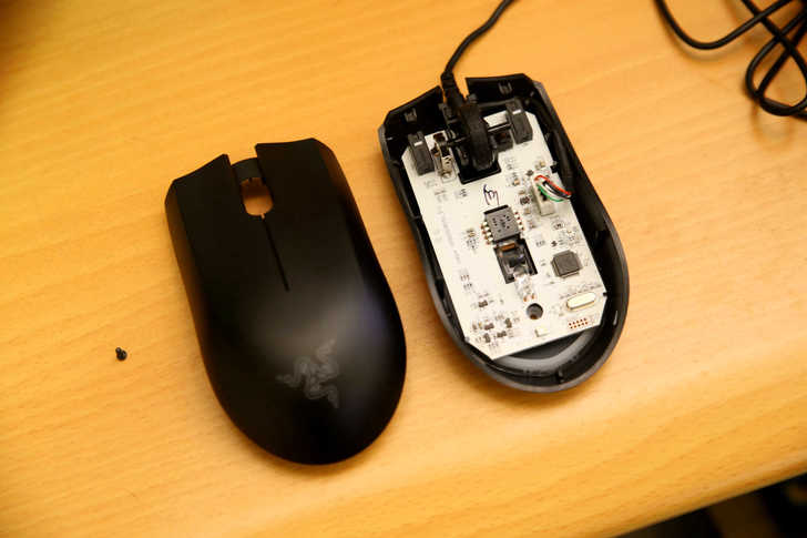 因為沒有保固貼,只要將底部的鼠腳給吹起來就可以進行拆解,看看 RAZER ABYSSUS ESSENTIAL 的配置是怎樣。