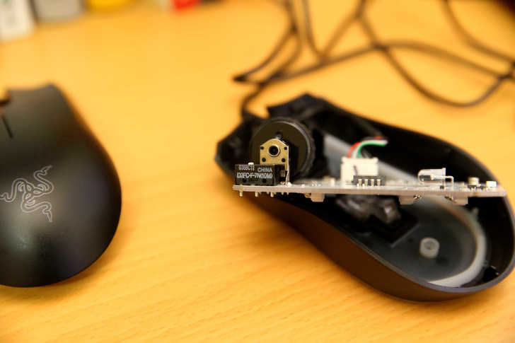 RAZER ABYSSUS ESSENTIAL 使用的微動開關是陸製歐姆龍 D2FC-F7N (10M),括號中的 10M 代表著耐用度可達 1,000 萬次點擊。