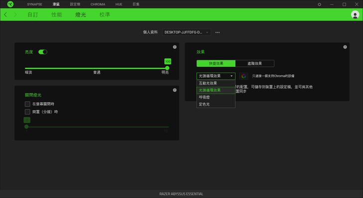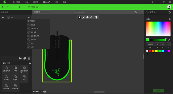 效果真的很多,若有多款支援 CHROMA 的雷蛇周邊,也可以直接在這個頁面進行多組周邊的設定。