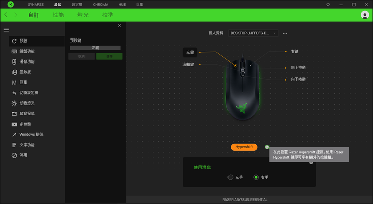 基本上 RAZER ABYSSUS ESSENTIAL 因為沒有配置側鍵,故巨集功能是用不太到。